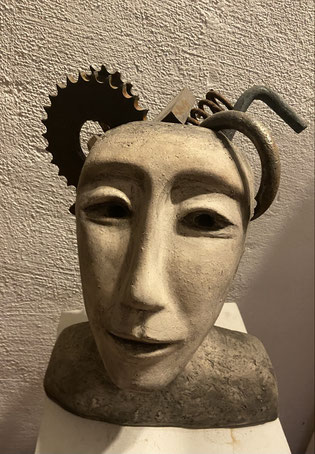 Skulpturen aus Ton, Metall - und Holzfundstücken führen durch die Lebensphasen und was dazwischen liegt.